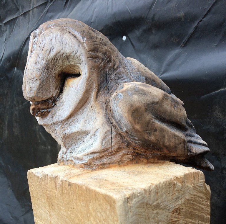 Simon har en formell bakgrund i konst och skulptur och arbetar nu uteslutande som en träbildare / motorsågsartist, som skapar unika konstverk från döda eller fallna träd.